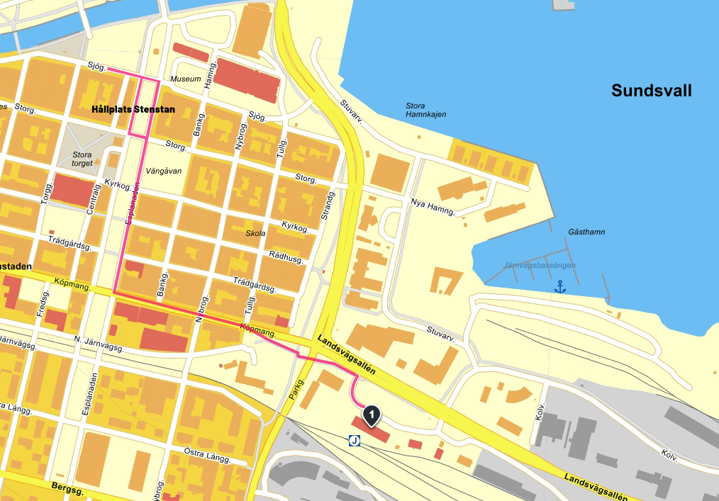 Restid: ca 5-10 minuter från hållplats Stenstan.